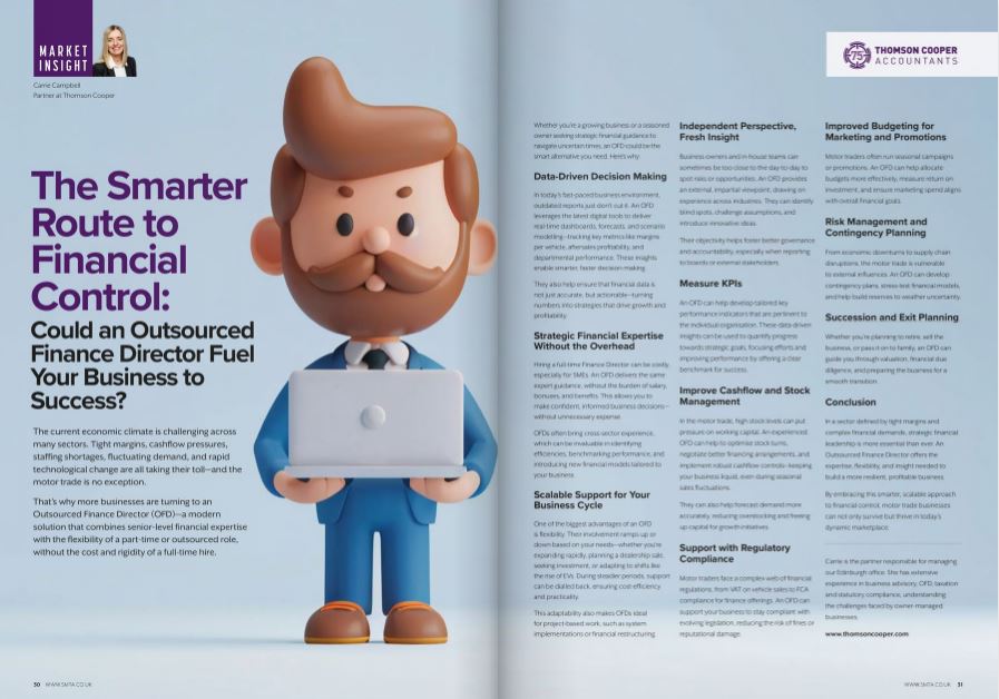 The current economic climate is challenging across many sectors. Tight margins, cashflow pressures, staffing shortages, fluctuating demand, and rapid technological change are all taking their toll—and the motor trade is no exception. That’s why more businesses are turning to an Outsourced Finance Director (OFD)—a modern solution that combines senior-level financial expertise with the flexibility of a part-time or outsourced role, without the cost and rigidity of a full-time hire. Whether you’re a growing business or a seasoned owner seeking strategic financial guidance to navigate uncertain times, an OFD could be the smart alternative you need. Here’s why: